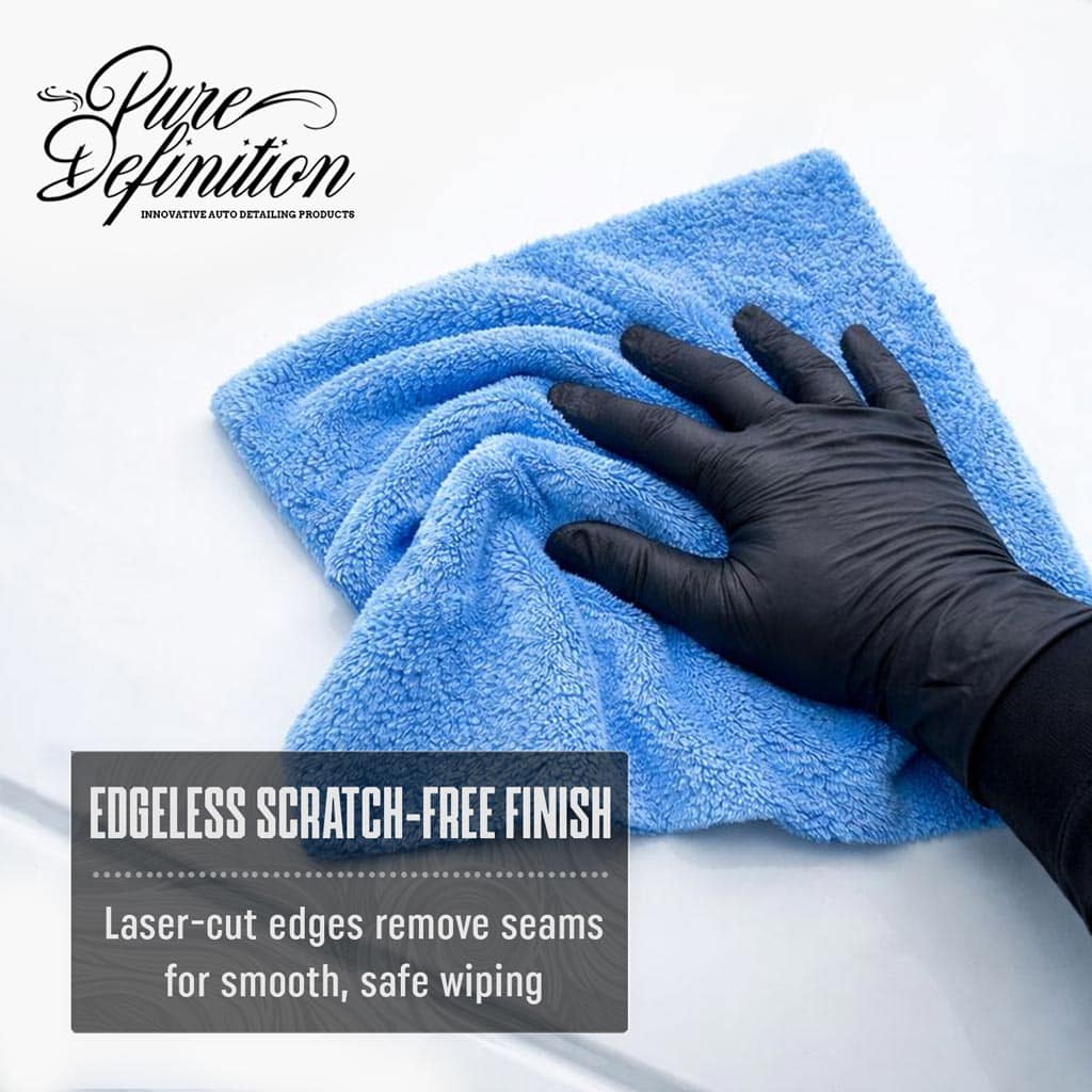 The precision laser-cut, edgeless construction removes hard stitched borders that can catch or drag across surfaces. This seamless design allows the cloth to glide effortlessly over paint, glass, plastics, and trim, making it ideal for sensitive finishes and high-gloss clear coats.